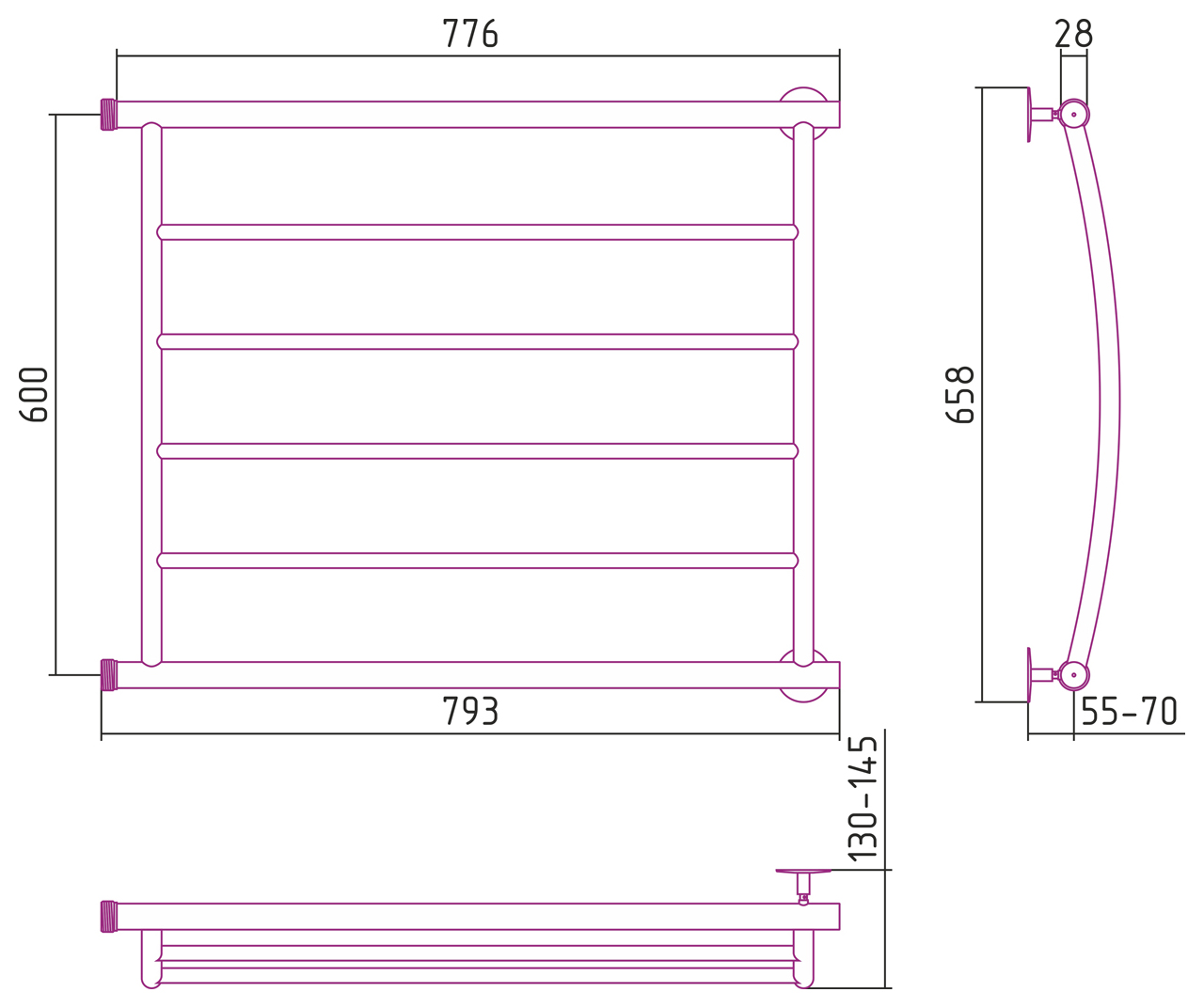 —Полотенцесушитель водяной Стилье МИНОР 600х800 (4) Г