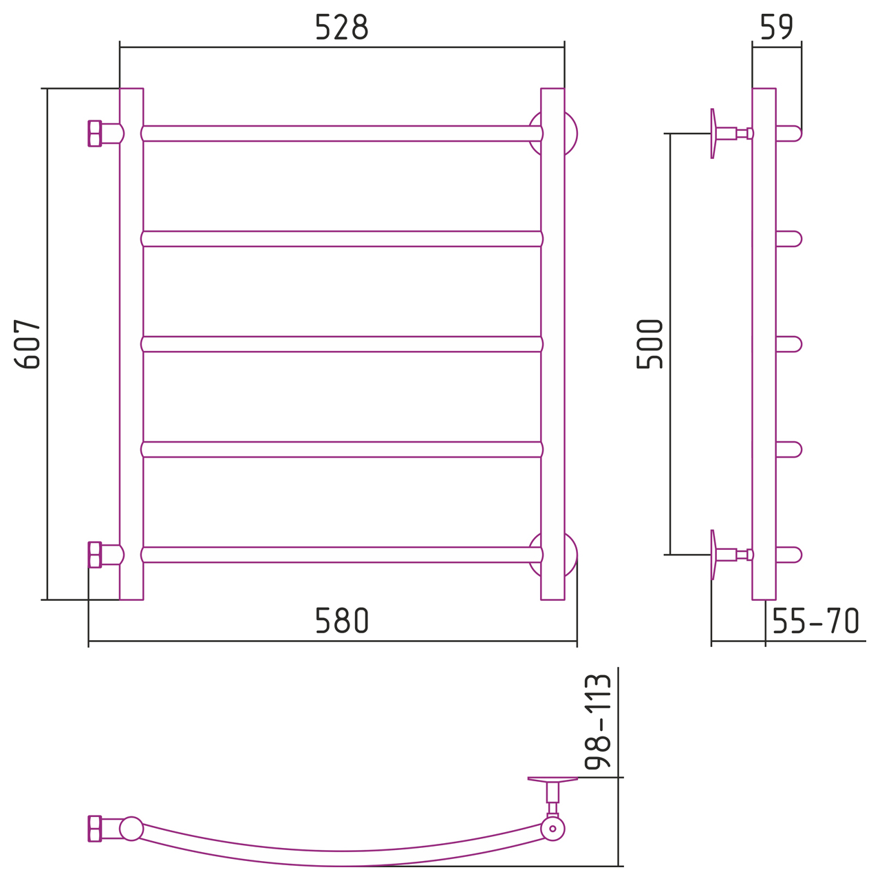 Вертикальное подключение, см