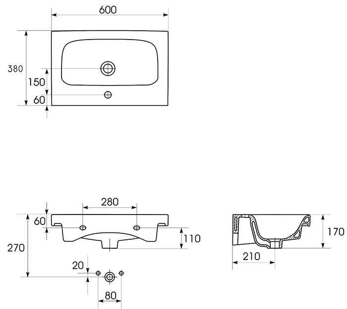 Раковина Cersanit MODUO SLIM S-UM-MOD60SL/1 60
